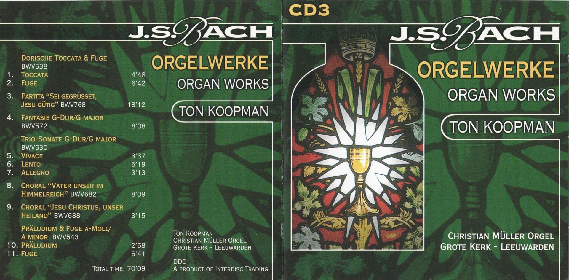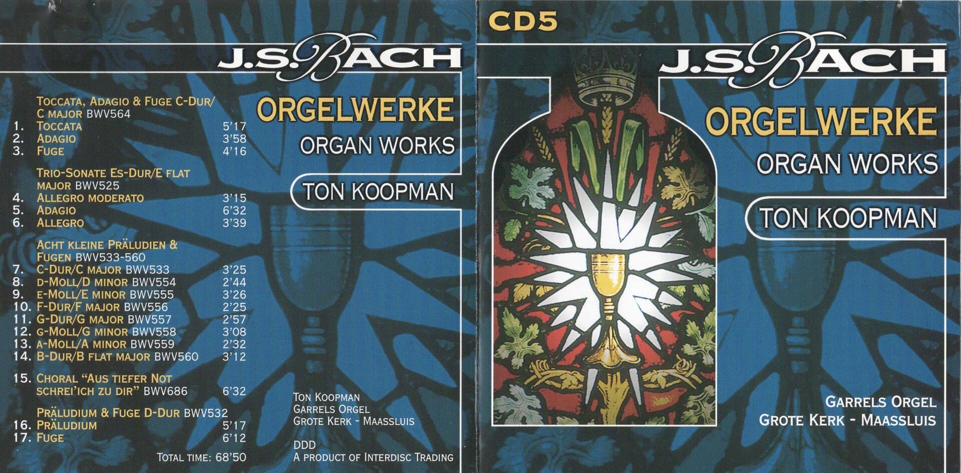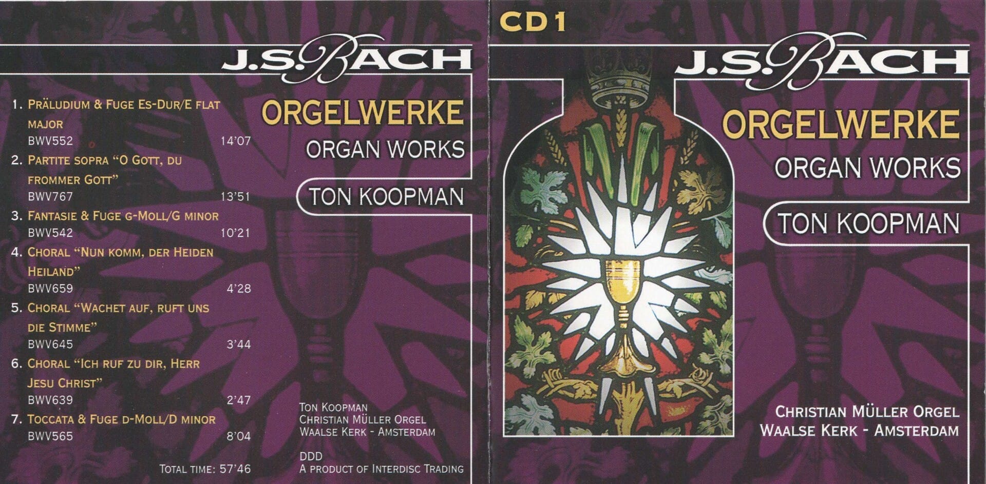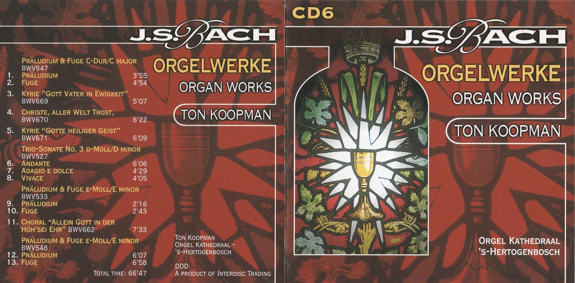 6 cd’s met alle orgelwerken van J.S. Bach, uitgevoerd door de specialist Ton Koopman.